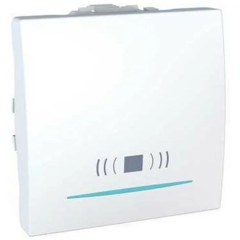 Bouton poussoir simple sonnerie avec LED bleue de repérage – Blanc – IP20 – IK01 – 10 AX – 250V AC – 50/60 Hz – Actionneur : Bouton poussoir – 2 modules – Pression fixe.