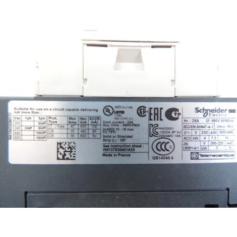 CONT 18A 1F 1O 42V RESS. TeSys – contacteur D – 3P – 3F – contacts auxiliaires 1F+1O – bobine 230VCA 50/60 Hz – sans antiparasite – AC-1 AC-3 AC-4 – 18A (<= 60DEGC) à <= 440VCA AC-3 32A (<= 60DEGC) à <= 440VCA AC-1 – bornes à ressort
