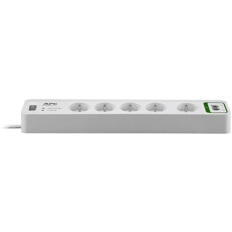 Prise parafoudre 5 prises – 2 ports USB – Protection de base pour ordinateurs et dispositifs électroniques – 2300 Watts – Courant d’entrée 10A – Voltage en entrée 230V – Protection modem/fax – Longueur du câble 1.83m