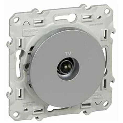 Odace – blindage TV simple – encastré – aluminium – TV : mâle IEC 9.52 mm – Fixation par vis – Livré avec couvercle de protection peinture – IK04 – IP21 D – sans halogène – qté 10.