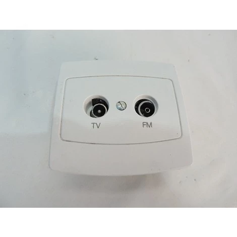Prise TV-FM 2 sorties câble avec retour sur tv blanche monobloc fixation vis et griffes ALCYON SCHNEIDER ELECTRIC ALB74324