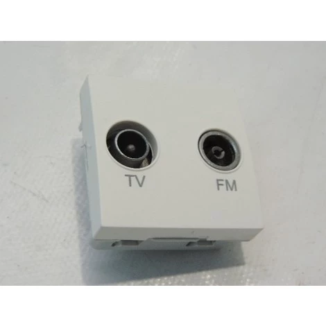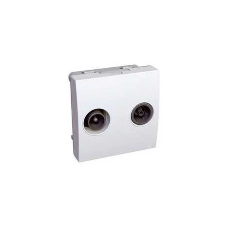 Prise TV-FM blanche 1 entrée – 2 sorties IEC mâle + IEC femelle format 45X45mm clipsable ALTIRA SCHNEIDER ELECTRIC ALB45327