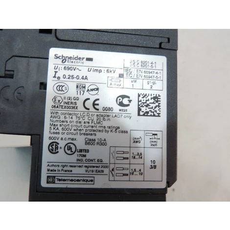 Relais de protection thermique differentielle pour moteur 0.25A à 0.4A 690V à associer avec contacteur (LC1D09-LC1D38) TESYS SCHNEIDER ELECTRIC LRD033