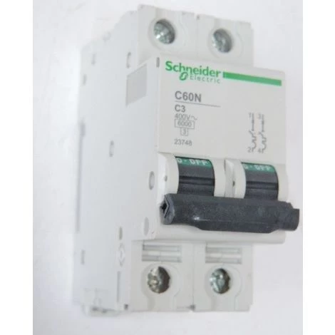 Disjoncteur 3A 2P courbe C 6kA bornes vis C60N SCHNEIDER 23748