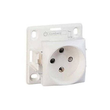 Prise 2P sans terre blanche a eclipses de securité (embase + enjoliveur) ALREA SCHNEIDER ALB61270