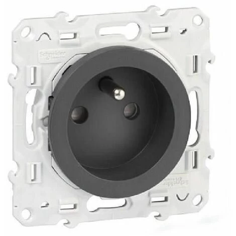 Prise de courant 2 pôles + terre anthracite, à vis, connexion rapide. Mécanisme avec cadre en plastique. Pose encastré, Avec contact de terre. Mode de fixation par vis.