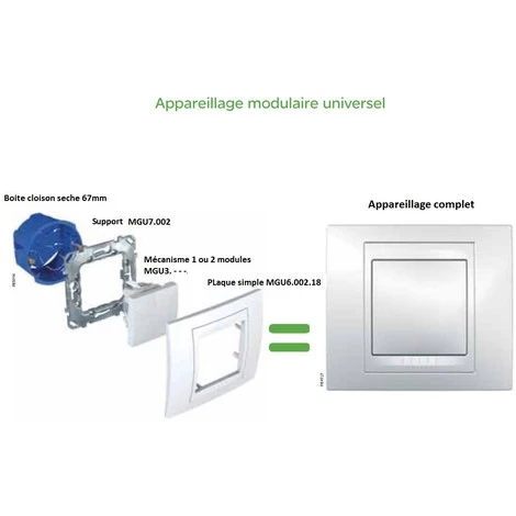 Sortie de cable 16A blanche 3 bornes pour fils 2.5mm² 2 modules UNICA SCHNEIDER ELECTRIC MGU3.862.18