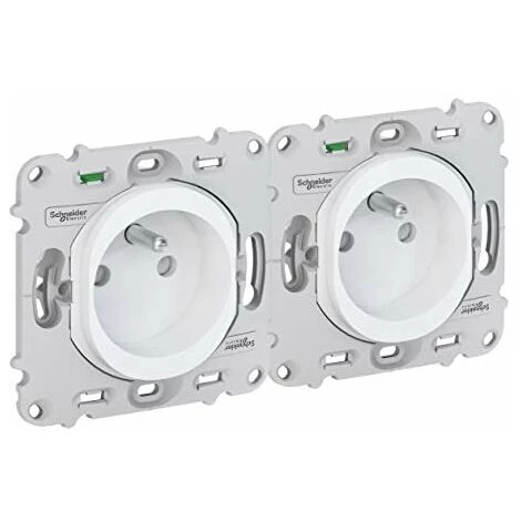 ? Type de mécanisme : prise électrique double ? Standard de prise : français ? Description standard de la prise : Avec contact de terre ? Eclipses sécurité enfant : oui ? Protection peinture : oui ? Fixation : vis ? Couleur : blanc ? Mode de pose : encastrée ? Plaque de finition : non incluse