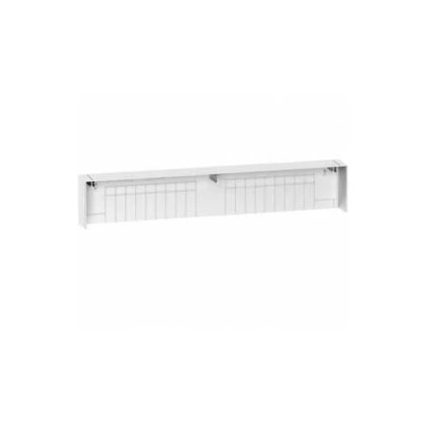Resi9 – Embout de goulotte – Largeur 18 modules – NF EN 50085-2-1 | NFC 15-100 – Tenue au feu 750°C conforme à EN/IEC 60695-2-11 – IP40 conforme à EN/IEC 60529 – IK08 conforme à IEC 62262 – H 35mm – L 364mm – P 66mm – blanc RAL 9003.